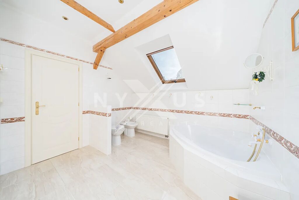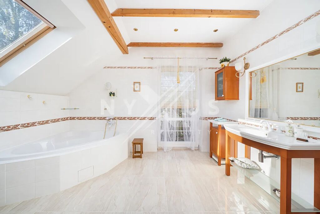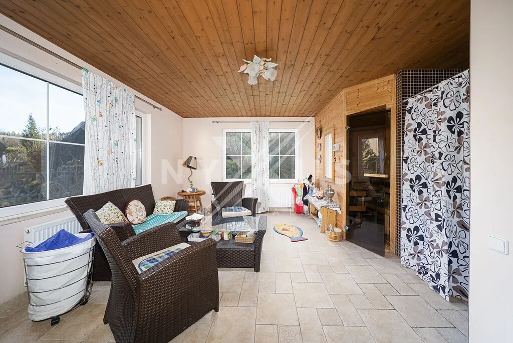 Na pozemku o ploše 3 334 m² se nachází také zateplený dům pro hosty o užitné ploše 56 m², který je vybaven obývacím pokojem, finskou saunou, sprchou, toaletou a samostatným pokojem pro hosty. Od brány vede příjezdová cesta k domu, kde je i možnost pro parkování vozidel. Nechybí ani venkovní posezení určené pro grilování. Součástí pozemku je také bazén a vířivka, které zajišťují komfort a možnosti relaxace. Zeleň v podobě vzrostlých stromů a keřů, které poskytují přirozené zastínění i soukromí.