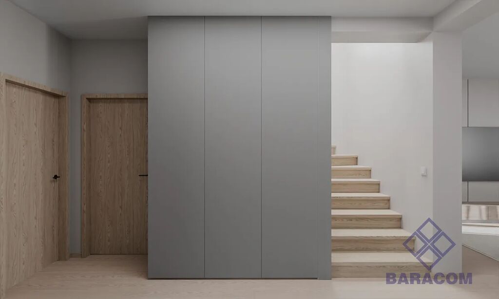 Vinylové podlahy (dekor dub) a interiérové dveře (dekor dub).
