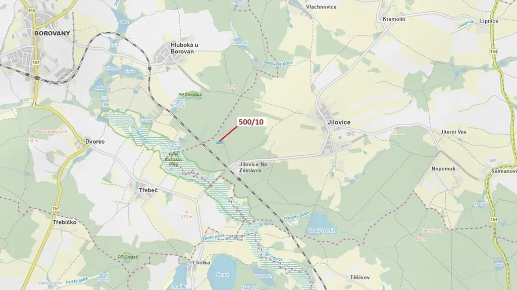 Lesní pozemek o výměře 5 755 m2, parcelní číslo 500/10, podíl 1/1, katastrální území Jílovice u Trhových Svinů, obec Jílovice, obec s rozšířenou působností Trhové Sviny, okres České Budějovice, Jihočeský kraj. Po těžbě.
