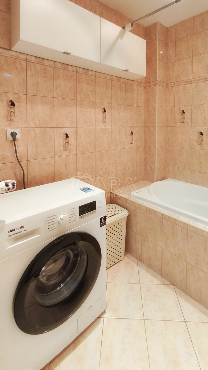 Byt je plně vybaven (viz foto) a disponuje dostatečným množstvím úložných prostor. V koupelně je pračka.