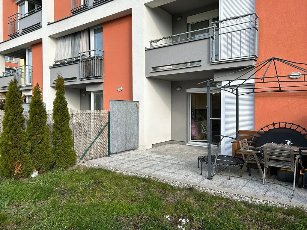 Součástí bytu je velká terasa navazující na vlastní oplocenou zahradu orientovanou do vnitrobloku, ideální pro relaxaci, pěstování nebo grilování.