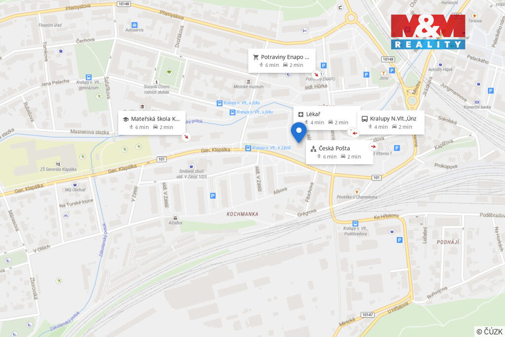V okolí nemovitosti je nově vybudované dětské hřiště a v docházkové vzdálenosti najdete MHD, vlakové nádraží, školy, školky, obchody i lékaře – zkrátka vše, co potřebujete k pohodlnému a kvalitnímu bydlení.