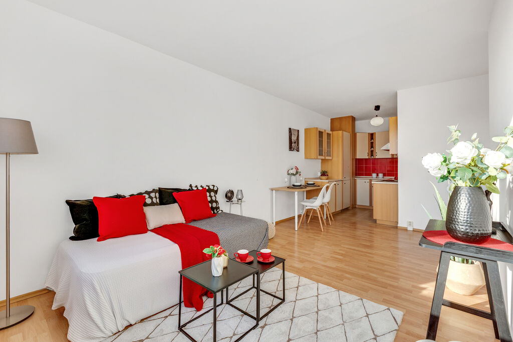 A teď pár slov k lokalitě. Nacházíme se v jednom z nejznámějších pražských sídlišť v Bohnicích, které jsou oblíbené díky své zeleni a skvělé dopravní dostupnosti. Přímo před domem je zastávka autobusu Sídliště Bohnice, odkud jste do 10 minut na metru C Kobylisy. V okolí najdete vše, co ke každodennímu fungování potřebujete, obchody, kavárny, restaurace nebo obchodní centrum Krakov. Kousek od domu se nachází Bohnický park, ideální místo pro procházky a sportovní aktivity, a také nedaleké cyklostezky podél řeky Vltavy.