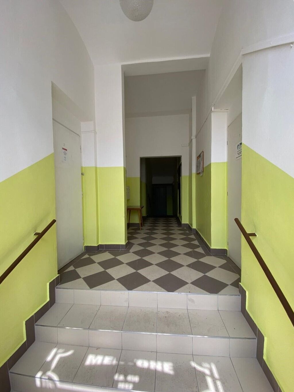 Budova je v dobrém stavu: zrekonstruovaná fasáda, společné chodby jsou v perfektním stavu.