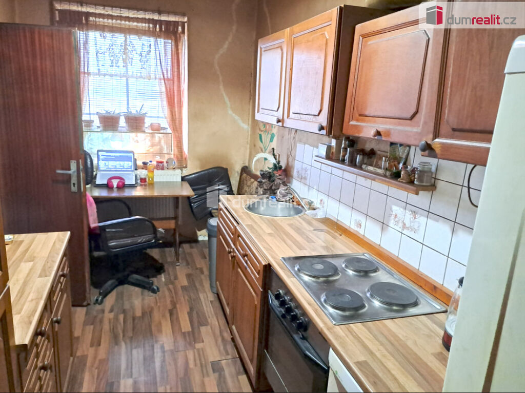 Celý dům vyžaduje rekonstrukci, nutná oprava zdiva, komínů, střechy, vyřešit vytápění výměnou kotle či jinak ..., odizolovat zadní část domu, která nabízí další zajímavé prostory k využití. V místnostech plovoucí podlahy, pod jejich izolací beton.