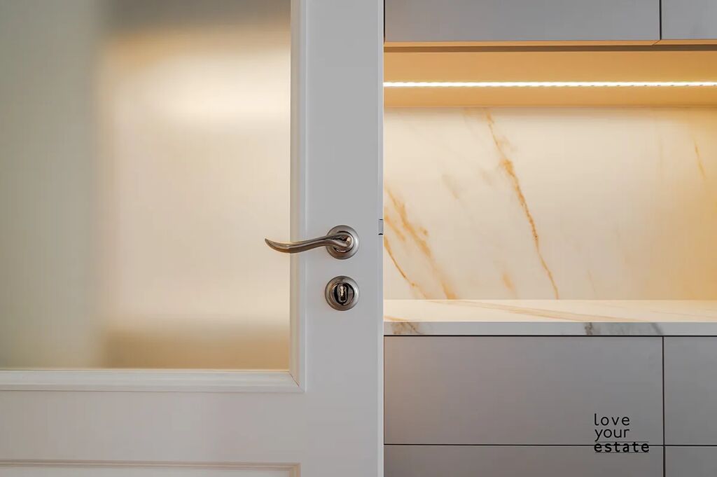 Fotografie jsou reálný stav bytu, není to vizualizace. V ceně bytu je již zahrnuta kuchyně se spotřebiči i vestavěné skříně na míru od truhláře, designové osvětlení i záclony na míru.