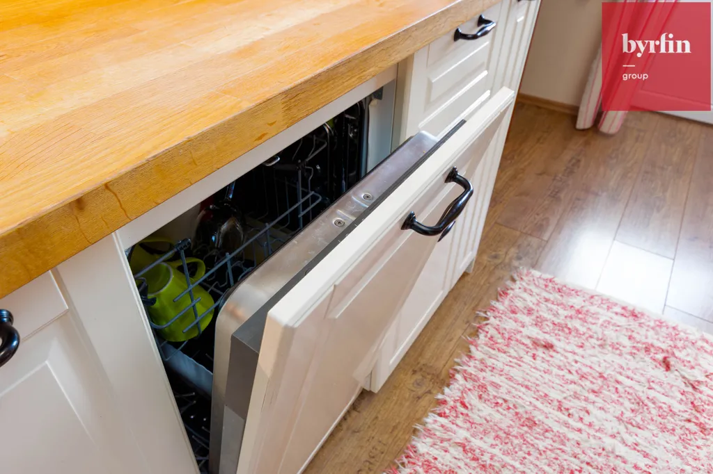 Byt je rozdělen na dvě části: ve spodní části najdeme koupelnu, samostatné wc , prostorný obývací pokoj, kuchyňský kout s vestavěnými spotřebiči, spíž, prostor na jídelní stůl a vstup na balkón s elektronickou markýzou.