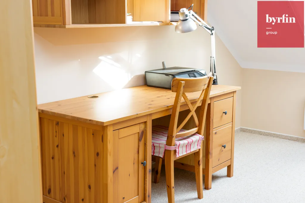 Druhá část mezonetu: Pokoj, ložnice , šatna a vstup na prostornou terasu, kde si můžete naplno užívat letních slunečných dnů.