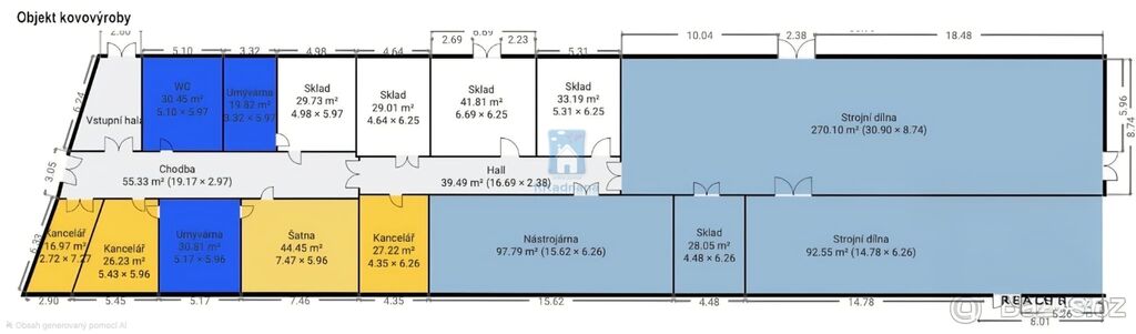 Kromě strategické polohy je další výhodou této nemovitosti její přízemní uspořádání, které umožňuje bezproblémový přístup a manipulaci s většími výrobními zařízeními. V případě potřeby je možné vybudovat i patrové řešení s možností rozšíření o další prostory.