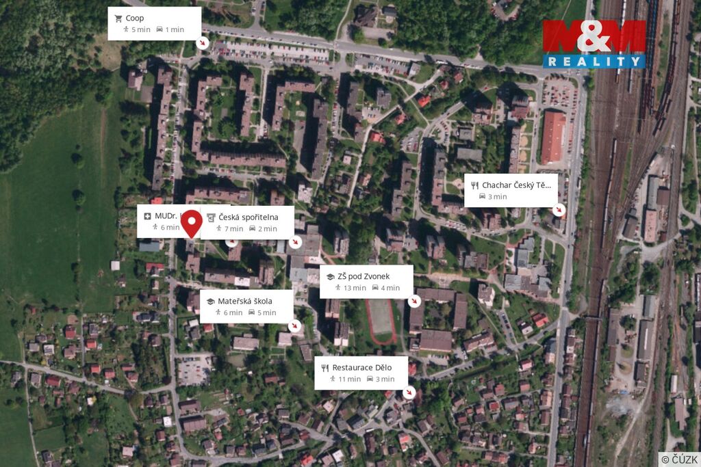 Tato adresa nabízí perfektní občanskou vybavenost. Pěšky dojdete pro čerstvé pečivo do obchodu COOP, děti to mají jen kousek do základní školy a školky a rychlé spojení s centrem města zajišťuje blízká autobusová zastávka. Lokalita nabízí klidné bydlení s veškerým komfortem sídliště.