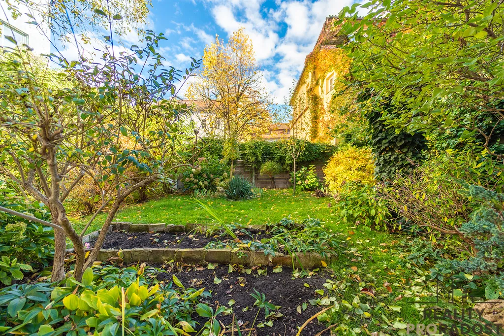 Uzamčená sklepní kóje a možnost využívat prostorné společné sklepní prostory a nádherný klidný zelený dvůr.