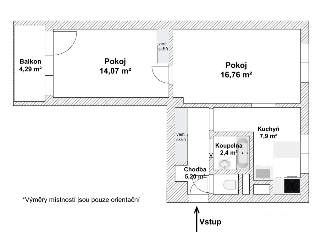 Nachází se v 1. patře bytového domu a hned při vstupu vás přivítá prostorná chodba s vestavěnou skříní, která nabízí dostatek úložného prostoru. Koupelna a toaleta jsou samostatné, což oceníte v každodenním provozu.