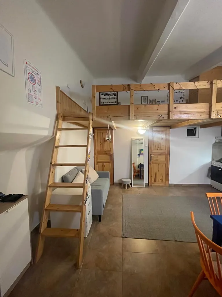 Nabízím k pronájmu byt orientovaný do vnitrobloku o dispozici 1+1 o celkové ploše 45m2 plus spací pochozí patro v cihlovém činžovním domě na adrese Vrchlického 47/36, Praha 5 - Košíře.