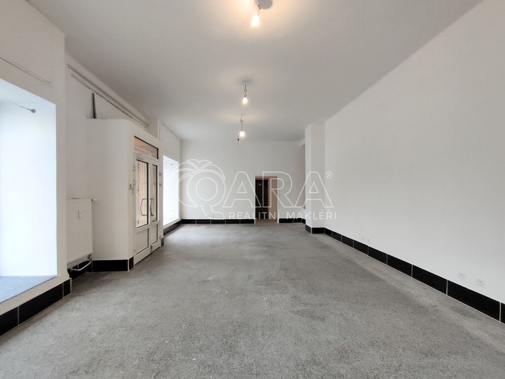 V principu jsou prostory rozděleny na dvě části. První má výměru cca 114 m2 a využijete ji jako obchodní, jelikož je umístěna v přízemí se dvěma vstupy z ulice a zároveň je vytápěná ústředním topením. Druhou část pak můžete využít jako sklad, ta je umístěna v suterénu a má výměru cca 44 m2. V zázemí je základní kuchyňka a toaleta.