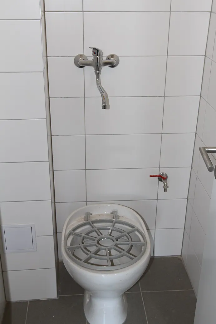 Toalety a úklidová místnost jsou společné na chodbě.