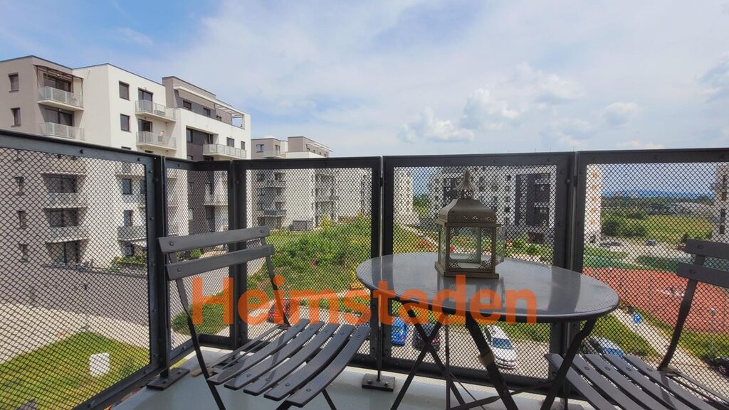 Hlavní obytný prostor působí vzdušným a uklidňujícím dojmem, kterému dominuje prostorná manželská postel zajišťující opravdové pohodlí. Moderní kuchyňská linka je vybavena aktuálními spotřebiči, takže plně pokryje běžné potřeby nájemníka. Koupelna je elegantní a nadčasová. Praktickým benefitem je možnost využívání pračky se sušičkou, která je umístěna v přízemí domu. Tato služba je dostupná za poplatek a přináší pohodlí zejména těm, kteří chtějí ušetřit prostor v bytě. Součástí domu je výtah a za příplatek je možné pronajmout garážové stání.