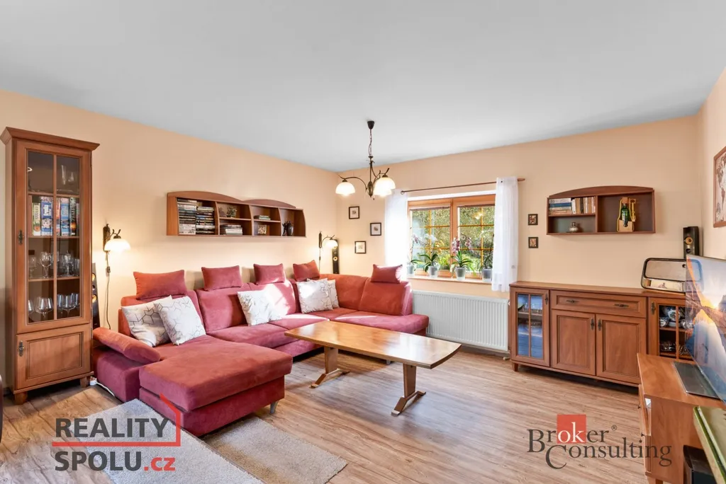 V přízemí se nachází obytný prostor s krbem, kuchyně a prostorná koupelna s vyhřívanou podlahou. V patře jsou tři ložnice a samostatné WC. Součástí domu je vyhřívaná garáž, terasa orientovaná do zahrady a zastřešené parkovací stání.