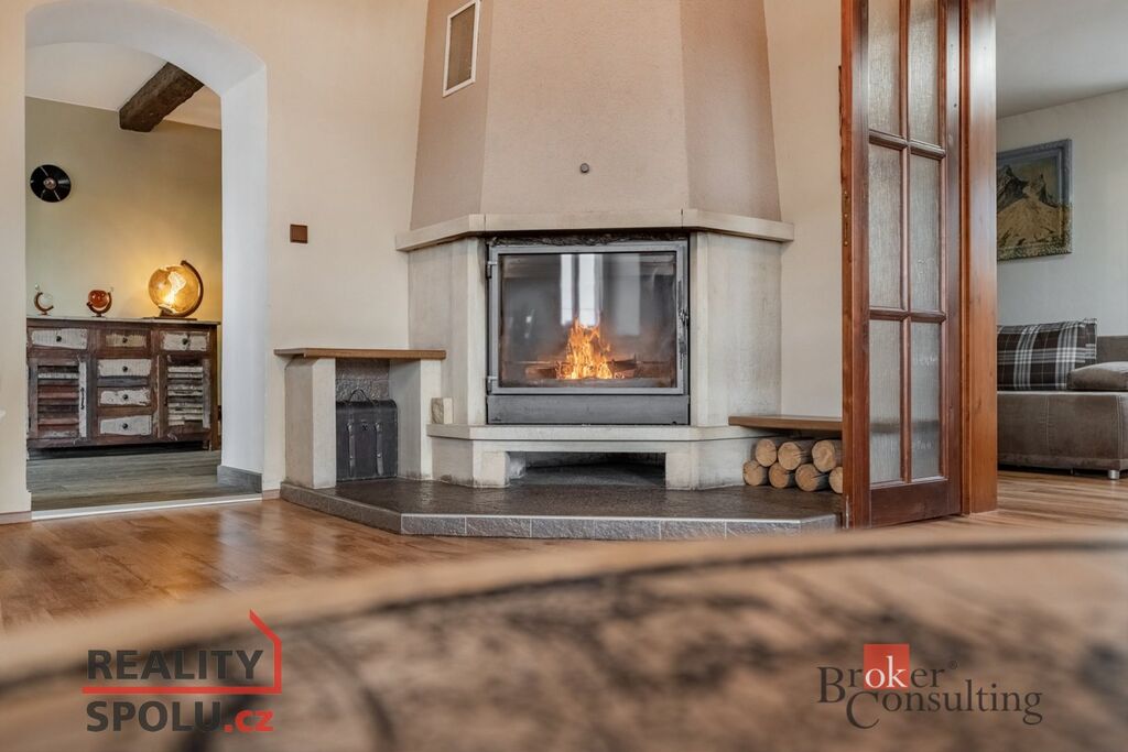 • Energie a sítě: vytápění je zajištěno kombinací krbu s výměníkem a elektrokotle, v patře je klimatizace a přímotopy, ohřev vody bojlerem, díky možnosti vytápění krbem se výrazně snižují náklady na provoz domu, což z něj činí úsporné a energeticky efektivní bydlení.
