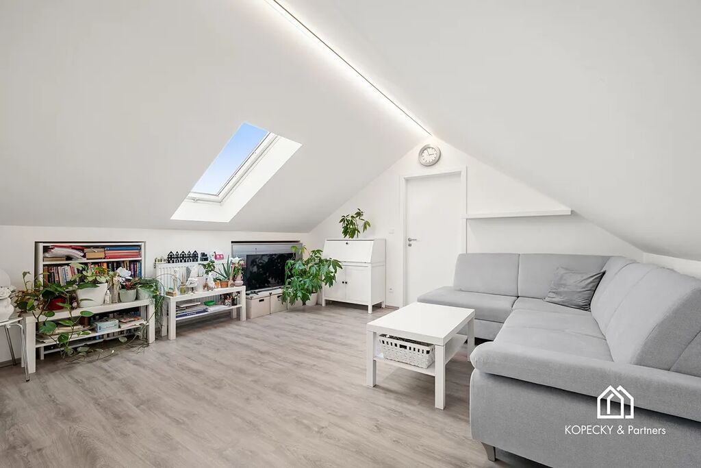 Byt nabízí 79 m² plně užitné plochy, což je pro dispozici 2+kk nadstandardní hodnota. Velkou výhodou jsou také podkrovní úložné prostory o velikosti přibližně 51 m², přístupné přímo z bytu. Celková podlahová plocha tedy činí 130 m², což majiteli poskytuje výrazně více flexibility než běžné byty této kategorie.
