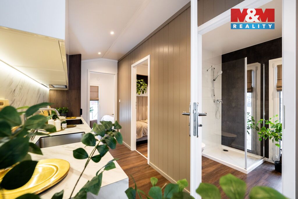 Na prodej nabízíme moderní mobilní dům na klíč, ideální pro ty, kteří touží po klidném dostupném bydlení nebo po pohodovém místě k odpočinku a rekreaci. Tento jednopodlažní dům smíšené konstrukce (ocel, dřevo, plasty, hliník) je vybaven nábytkem a spotřebiči, takže po předání je připraven k okamžitému nastěhování. Užitná plocha činí 57 m². Dům lze umístit na jakýkoliv pozemek určený k zastavění do 6 měsíců od získání stavebního povolení. Předmětem prodeje je samotný mobilní dům bez pozemku. Cena zahrnuje převoz na místo, usazení domu je účtováno dle složitosti případu. Cena je uvedena bez DPH, které se odvíjí od komplexnosti obchodu. Nepropásněte tuto jedinečnou příležitost k pořízení domu a starosti se získáním stavebního povolení na Váš pozemek nechte na projektantovi. Se zajištěním výhodného financování pomůže partner MM finance. Domluvte si prohlídku v showroomu v Rychnově nad Kněžnou ještě dnes. V inzerci použita AI vizualizace.
