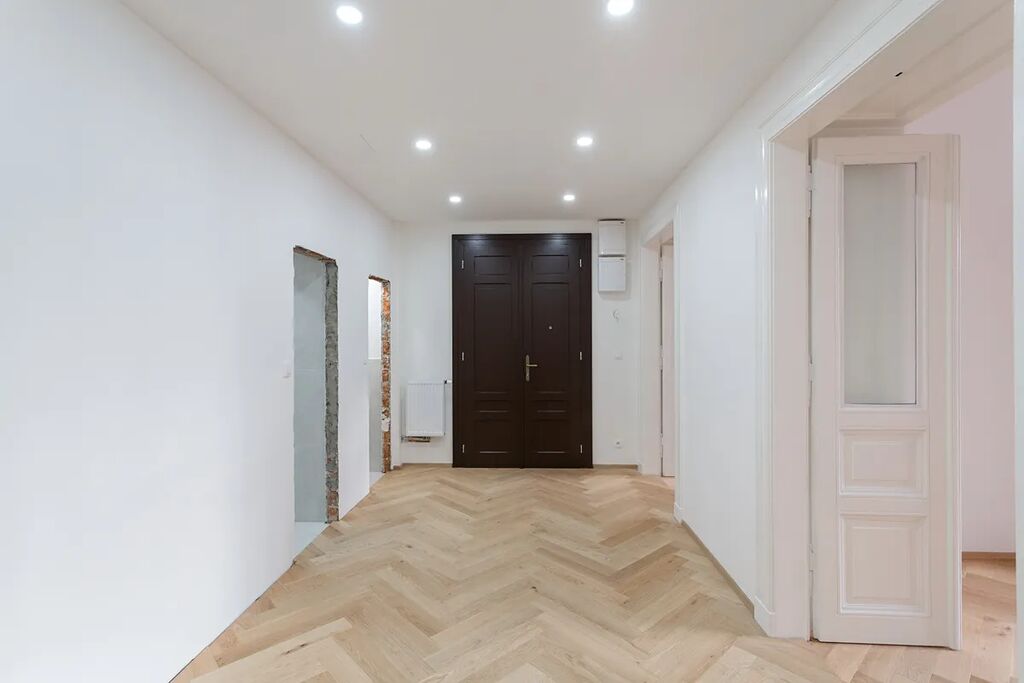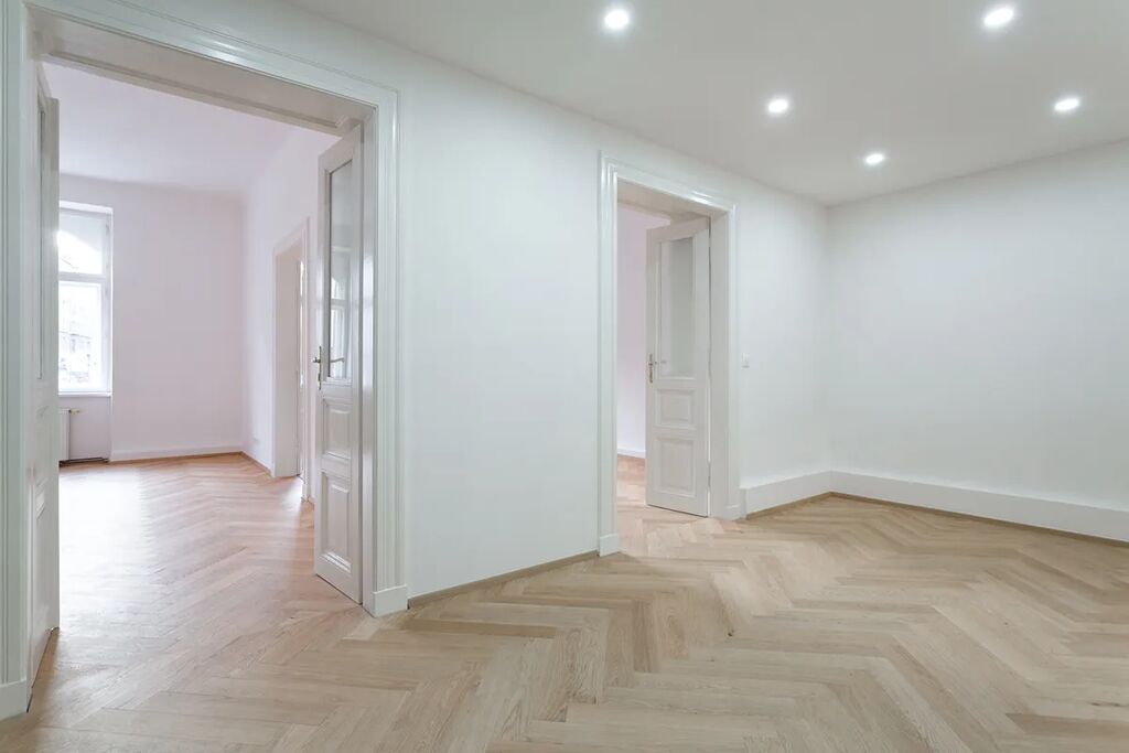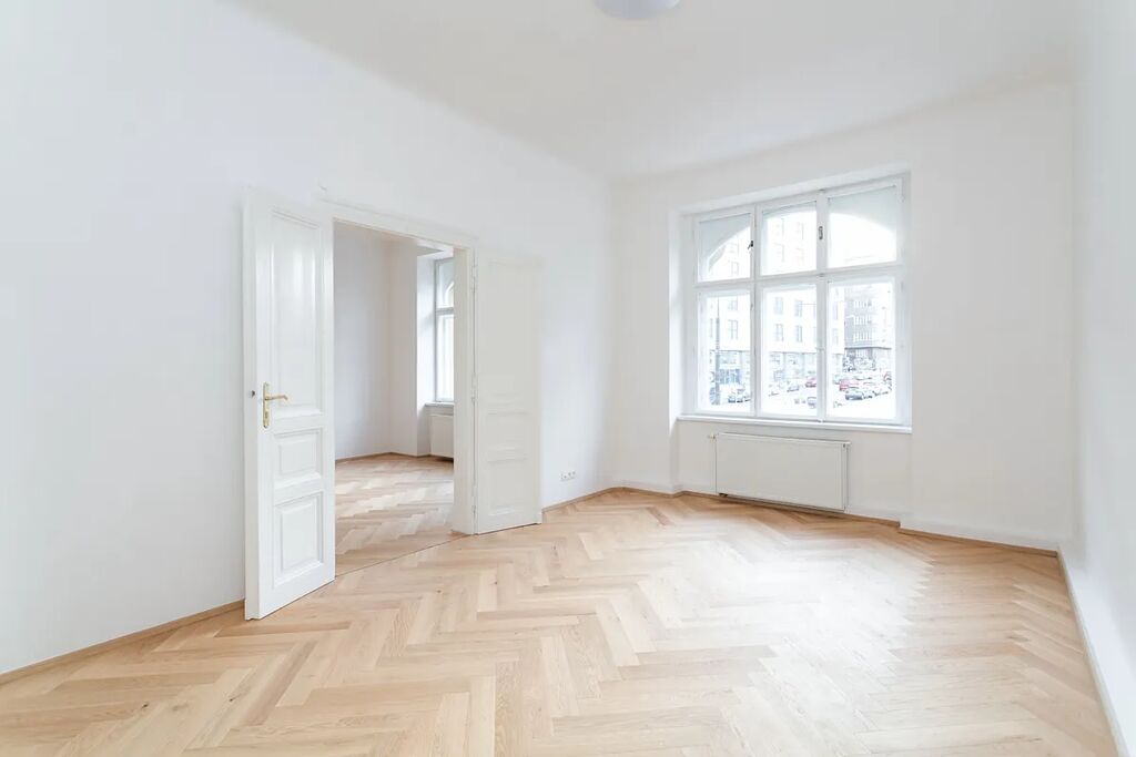 Byt je čerstvě po kompletní nové rekonstrukci (dokončeno 11/2025), nový neobývaný s předpřípravou pro kuchyňskou linku. Byt je velmi prostorný, světlý, vzdušný a klidný. V bytě jsou krásné nové dřevěné parkety a repasované dvoukřídlé historické interiérové dveře, které dodávají prostoru charakter a genius loci. Aktuálně se dokončují už jenom jednokřídlé interiérové dveře a zárubně na míru.