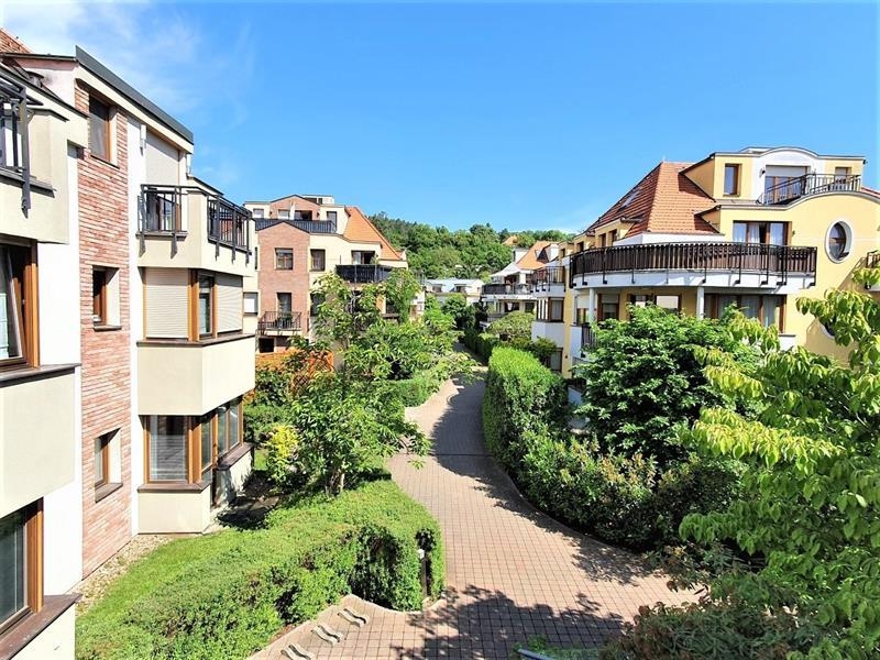 Orientace bytu a terasy je převážně na slunný západ a jih (pouze 1 menší pokoj je na sever). Vstup na prostornou terasu je možný jak z obývacího pokoje tak i ložnice. Byt má 2 neprůchozí pokoje. Je zařízený nábytkem včetně kuchyňské linky se žulovou pracovní deskou a sklokeramickou varnou deskou, el. troubou, lednicí s mrazákem, myčkou a mikrovlnnou troubou. Dále je k dispozici pračka, nábytek viz foto včetně 2 vestavěných šatních skříní. V obývacím pokoji je k dispozici funkční krb na dřevo. Okna v každém pokoji mají elektricky ovládané venkovní rolety. V koupelně je sprchový kout a umývadlo. WC s menším umývadlem je zvlášť. Na podlaze jsou parkety a dlažba. Topení je ÚT - dům má vlastní kotelnu. V koupelně, na WC a nachodbě je možné využívat navíc podlahové vytápění. Parkování je zajištěno v garážovém stání v 1.PP domu.