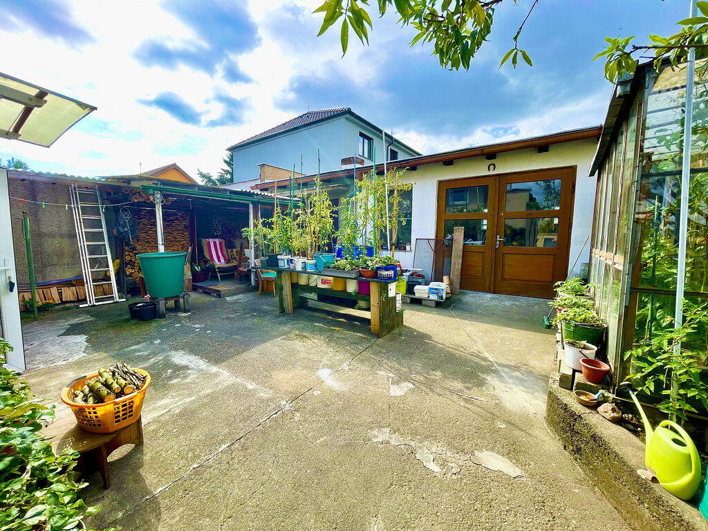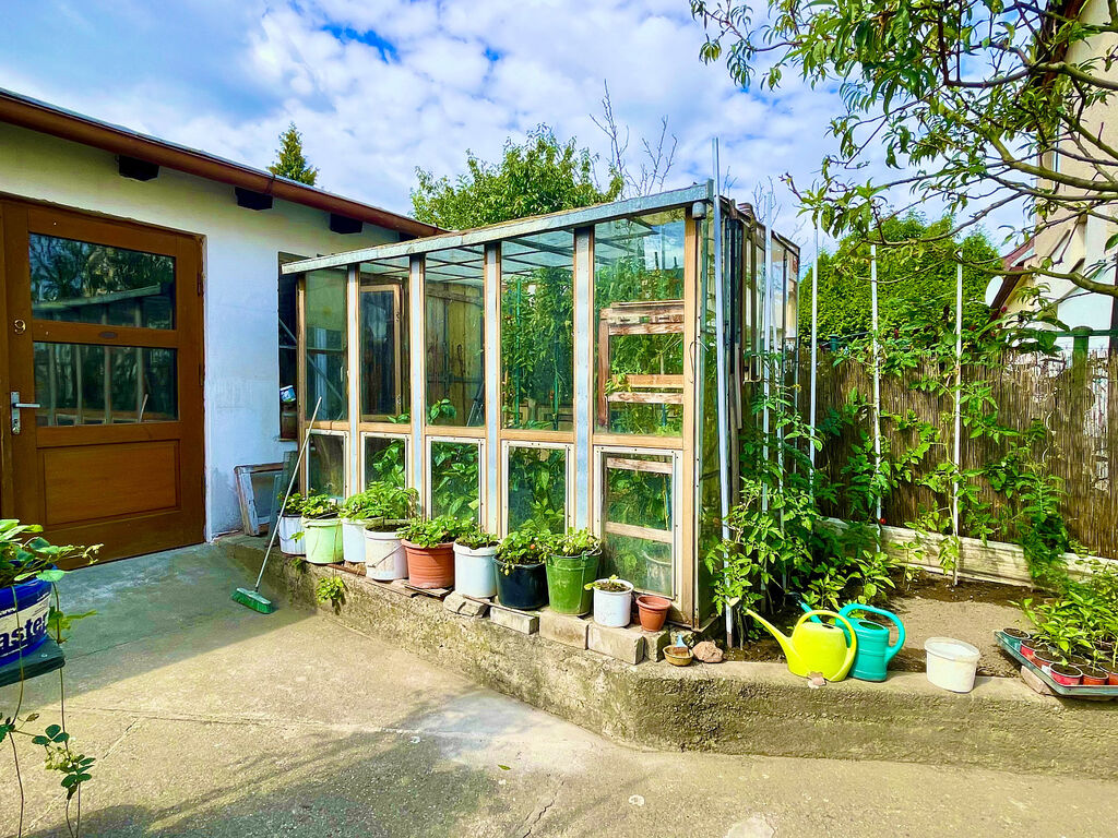 K dispozici je garáž, resp. technické místnosti (66m²). Majiteli může využívat rovněž skleník.