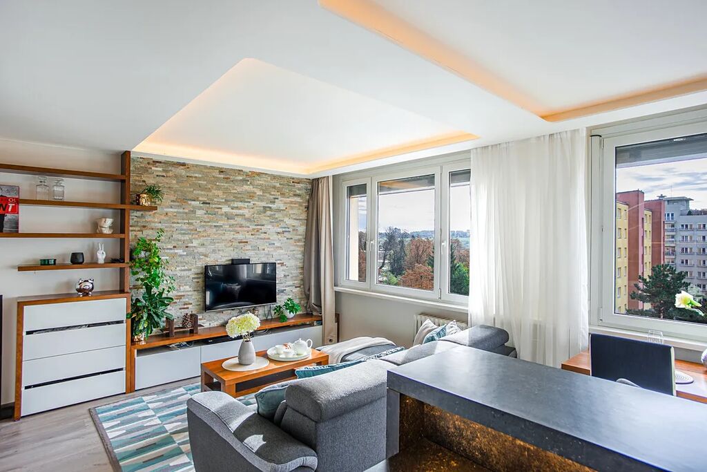 Byt prošel kompletní moderní rekonstrukcí a je plně vybaven – stačí si přinést osobní věci a můžete bydlet. Interiér působí vzdušně, čistě a nabízí příjemnou atmosféru k pohodlnému životu.