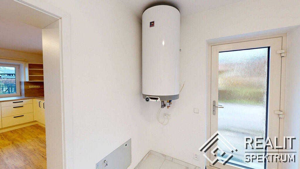 • Technické zázemí: Samostatné prostory v technické a skladovací místnosti s přípravou na instalaci pračky i sušičky.