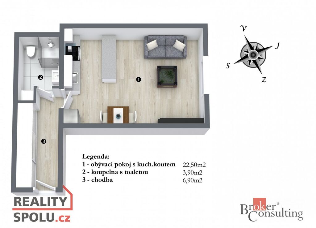 Nabízíme Vám k pronájmu byt 1kk o celkové ploše 35,2m², P3, ulice Ondříčkova, na rozhraní Žižkova a Vinohrad. Byt je umístěný v 5. podlaží zrekonstruovaném bytovém domě Rezidence Ondříčkova. Byt je k nastěhování od 15.12.2025. Jedná se o byt v moderním provedení a s kompletním vybavením. Byt je plně funkční a zároveň vzdušný, světlý s orientací na JV. Dispozice bytu: předsíň (6,9m²) s vestavěnými skříněmi se spoustou úložného prostoru, obývací pokoj s kuchyňským koutem (22,5m²), který je plně vybaven vestavěnými spotřebiči (sklokeramická deska, horkovzdušná trouba, myčka, lednice kombinovaná s mrazákem, digestoř), jídelní stůl se 2 židlemi, konferenční stolek, TV stolek a sedací souprava, která po rozložení slouží jako pohodlné spací lůžko s úložným prostorem. V koupelně (3,9m²) je k dispozici podlahové vytápění, pračka, umyvadlo se skříňkou, sprchový kout, toaleta a je zde další úložný prosto nad pračkou a nad umyvadlem. K bytu náleží sklep v suterénu domu pod uzamčením. Lokalita je bohatá na restaurace, kavárny, obchody a je s kompletní občanskou vybaveností. Jedná se o velmi dobře dostupné místo autem i MHD. Stanice metra „A“ Jiřího z Poděbrad je vzdálena od domu pouhých 200 m. Parkování je možné před domem – modrá zóna. V těsné blízkosti se nachází Mahlerovy sady, kde stojí Žižkovská televizní věž a opodál se nachází Riegrovy sady s možností využití volnočasových aktivit. Vhodné pro 1-2 osoby. Vřele Vám tento byt doporučuji.