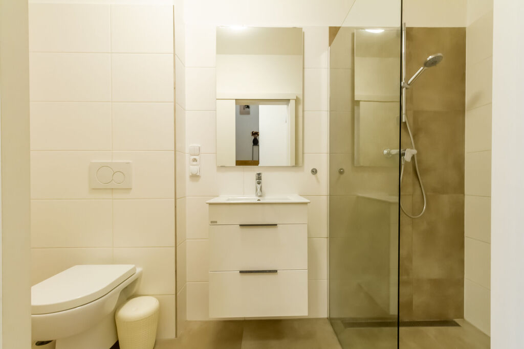 Po vstupu do domu vás přivítá prakticky řešená zádveřní část s velkou šatnou, která usnadňuje každodenní chod domácnosti a poskytuje dostatek úložného prostoru pro obuv, bundy i sportovní vybavení. V přízemí nechybí ani pracovna, ideální pro home office nebo pokoj pro hosty. Dále se zde nachází koupelna se sprchovým koutem a toaletou.