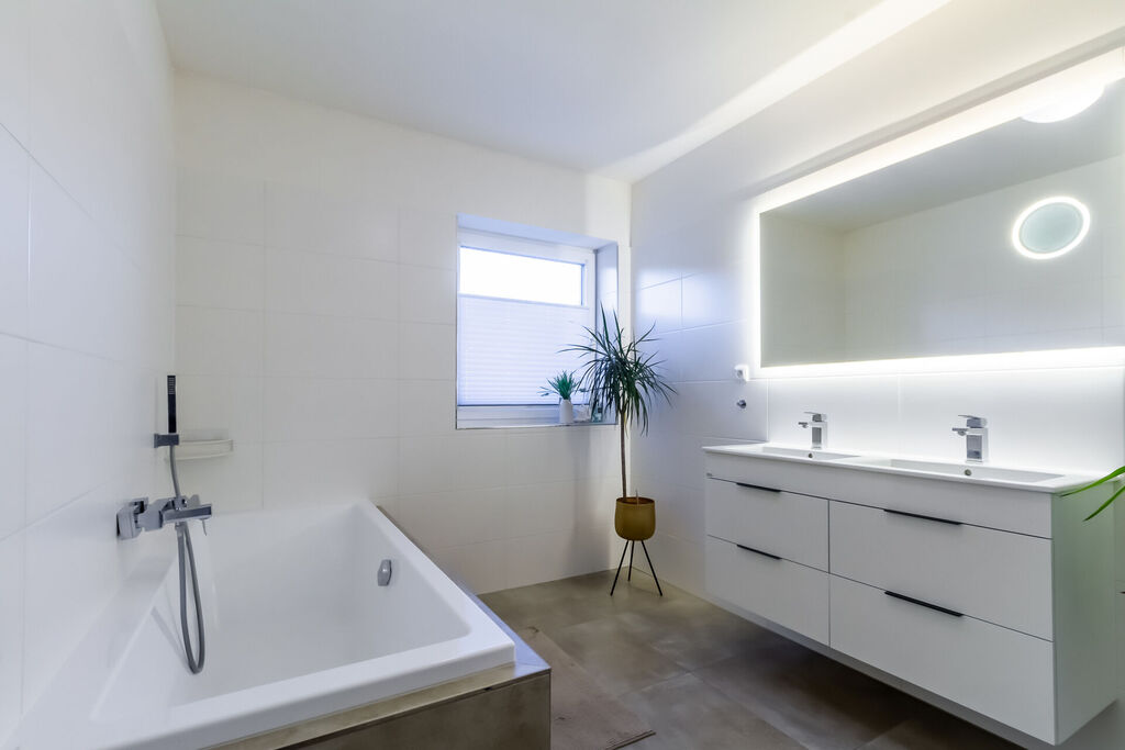Dominantou přízemí je prostorný obývací pokoj s krbem, který vytváří příjemnou atmosféru domova a v zimních měsících slouží jako příjemná alternativa vytápění. Obývací pokoj je propojen s moderní kuchyní a jídelnou, čímž vzniká velký společenský prostor pro rodinný život i setkávání s přáteli. Francouzské dveře vedou přímo na terasu a do zahrady — ideální prostor pro odpočinek, dětské hry, letní grilování nebo ranní kávu venku.