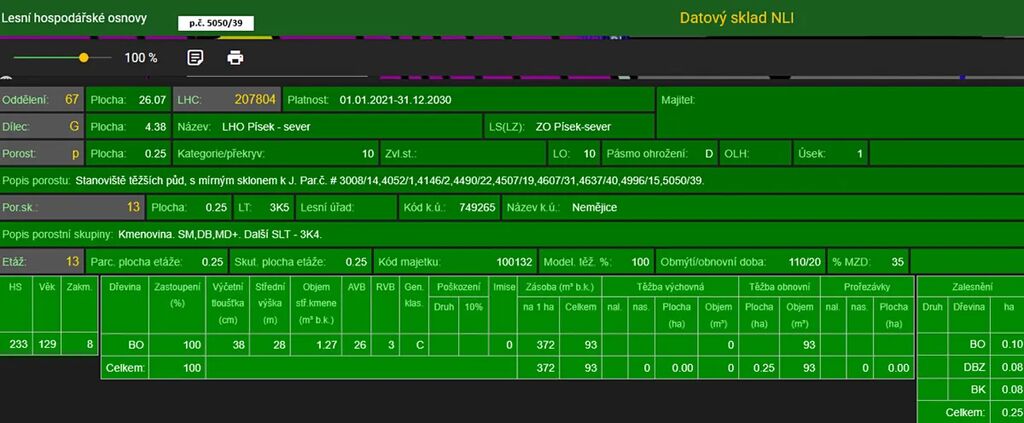 p.č. 4996/15 vedená jako lesní pozemek o celkové výměře 589 m2.
