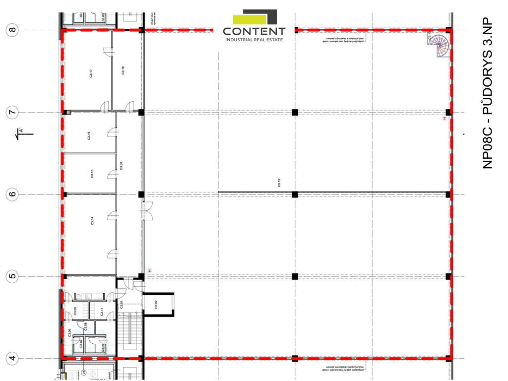 - prostory v přízemí 450 m² a 3. NP komerční budovy 1121 m² + schodiště 20 m²