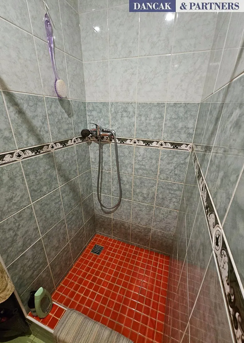 Bytová jednotka sestává z předsíně, menší kuchyně vybavené kuchyňskou linkou a lednicí, koupelny se sprchovým koutem, umyvadlem a částečně oddělenou toaletou (zděné jádro).