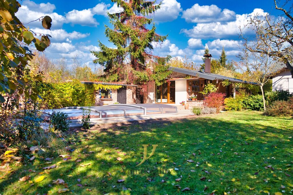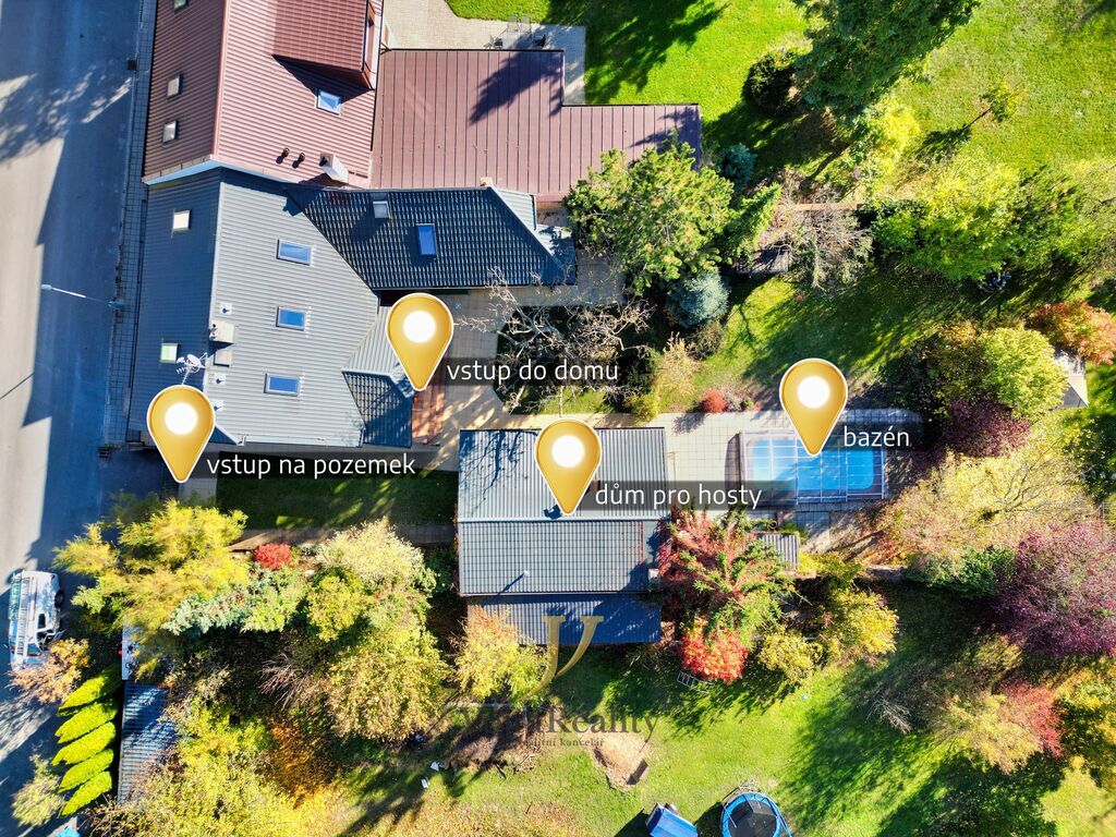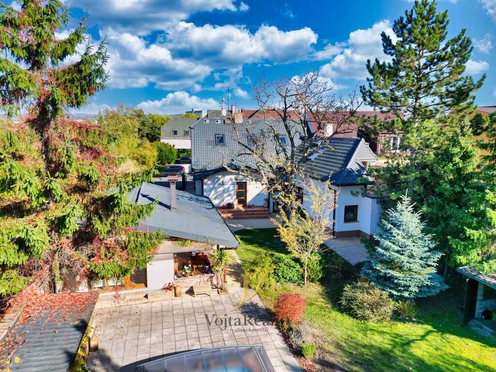Nabízíme vám ke koupi originálně řešený rodinný dům s bazénem, sklepním prostorem 18m² , nebývale prostornou zahradou a s domem pro hosty, v olomoucké městské části Holice - ul. Jaselská.