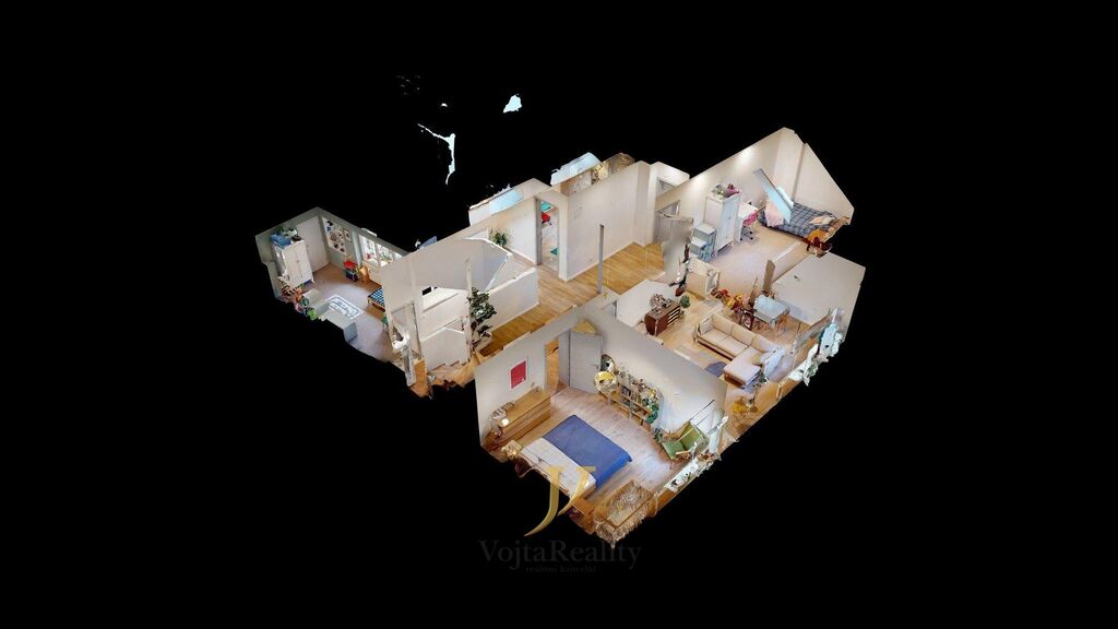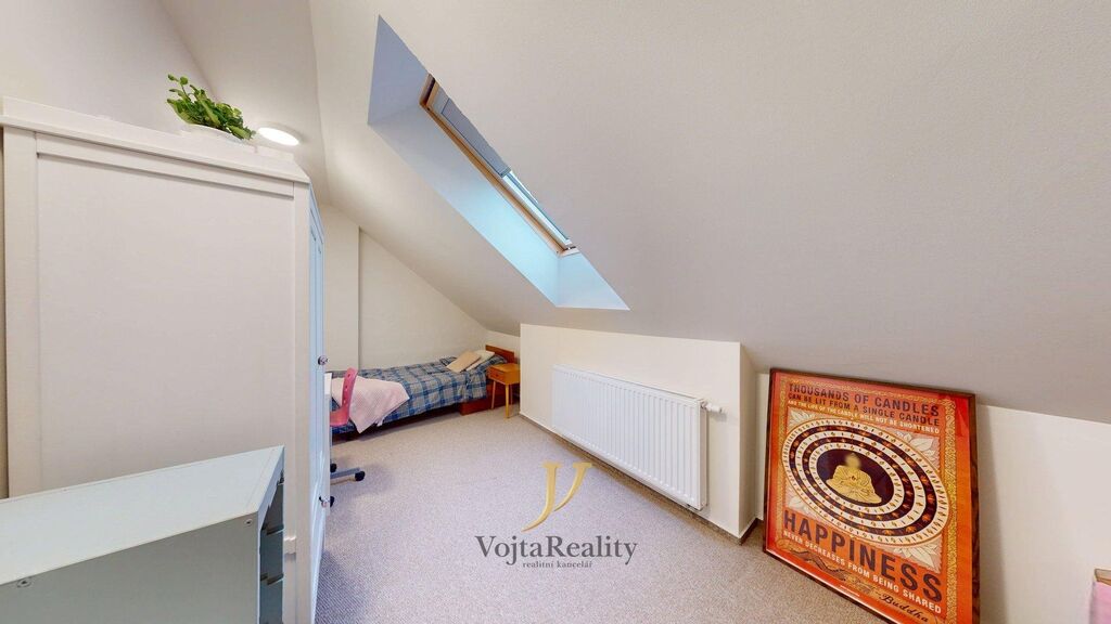 Dále je v prostoru nad současným dětským pokojem, v jižním křídle domu příprava na další místnost. Prostor je dostavěný, zbývají finální úpravy prostřednictvím zájemce o koupi. Tento půdní prostor je samostatně přístupný po schodišti z vnitrobloku.