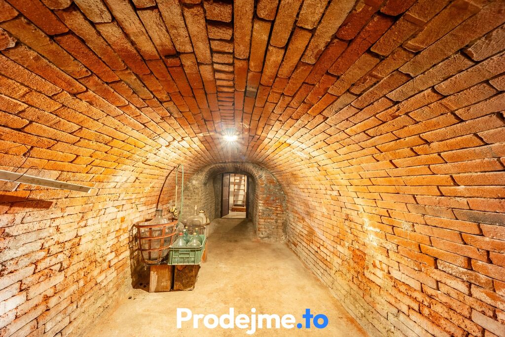 Pod domem se skrývá zachovalý vinný sklep – ideální pro uskladnění vína nebo potravin. K domu patří garáž s dílnou, prostorný průjezd, sklad nad garáží a kůlna na zahradě. Parkování je možné jak před domem, tak i přímo v garáži.