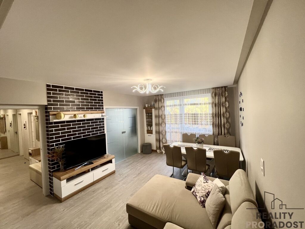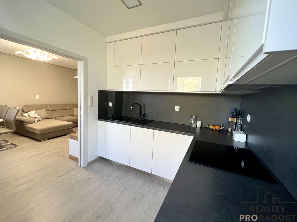 Prodej bytu přibližně 86m², byt 3+1 + 2 balkony + garážové stání + sklep + kóje. Byt je po kompletní rekonstrukci včetně rozvodů elektřiny, topení a nových topných těles. Topení je zajištěno centrálně pomocí plynu. V bytě jsou kompletně vyměněny rozvody vody a topení. Dostatek úložného prostoru poskytuje šatna. Kuchyně je nově vyrobená truhlářem a vybavená vestavěnými spotřebiči s dostatkem úložného prostoru.