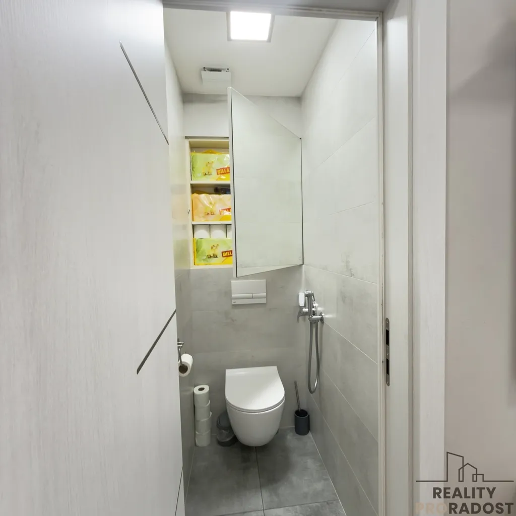 V celém bytě jsou kompletně vyměněné vinylové podlahy, v koupelně a na toaletě je položená dlažba. Pokoje a chodba mají noční svícení s návěsným stropem. Dveře firmy Sapeli – moderní bezfalcové s hladkou linií dveří a zárubní, ze kterých nic nevyčnívá.