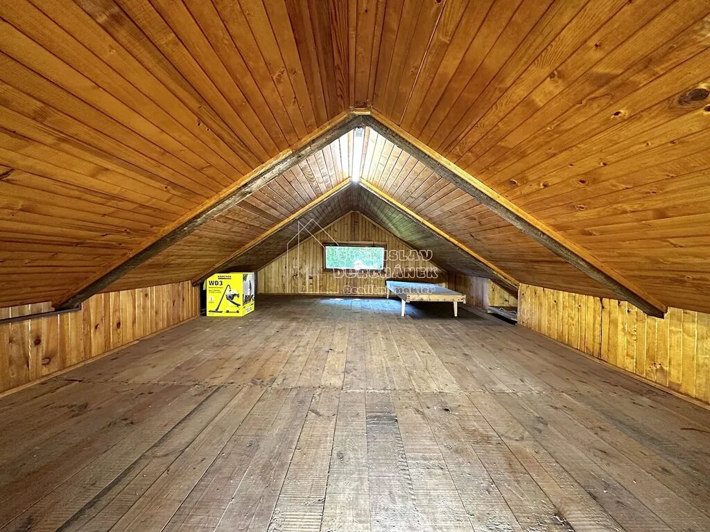 V přízemí najdete útulnou hlavní místnost s kamny na dřevo (18,2 m²), ideální pro společné večery, vstupní halu (7,9 m²) a oddělený prostor pro umyvadlo a WC. V podkroví (20,8 m²) je místo na spaní pro celou rodinu nebo úložný prostor.