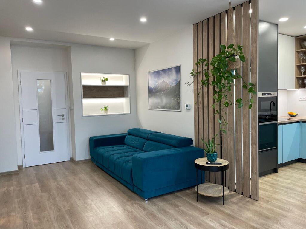 Vybavení a standard: Byt je vybaven kuchyňskou linkou zhotovenou na míru s kompletní sadou vestavných spotřebičů - indukční varná deska a digestoř s technologií Hob2Hood (bezdrátové propojení varné desky s odsavačem par. Začněte vařit a odsavač sám automaticky přizpůsobí intenzitu odsávání podle výkonu varné desky), elektrická a mikrovlnná trouba, myčka nádobí. Vše je necelé 2 roky nové. V zádveří jsou umístěny na míru vyrobené vestavěné skříně a kompletní nábytek v bytě je realizován na zakázku.