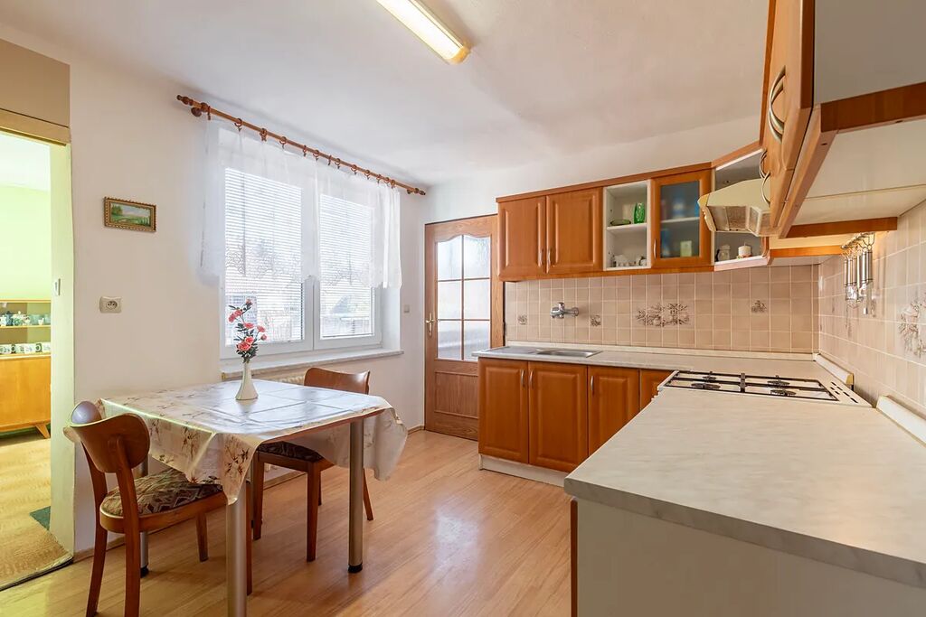 Dům, který nabízí více než čekáte. Dispozice je rozmanitá a promyšlená – hlavní obytná část domu a samostatná malá bytová jednotka (skvělé pro hosty, rodiče, pronájem či podnikání). Celkem 5 pokojů, 2 kuchyně, hospodářské místnosti, sklep, prádelna, kotelna i bývalé chlívky.