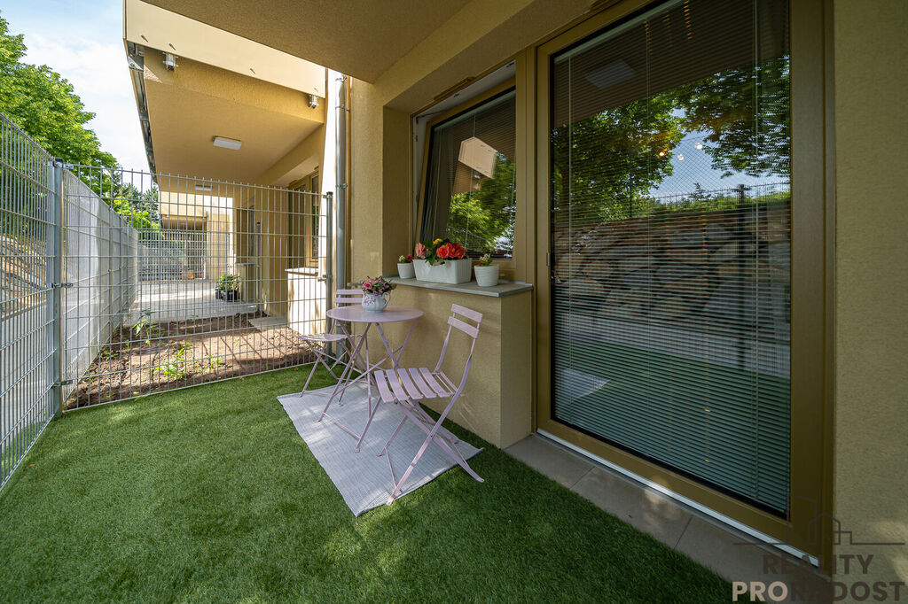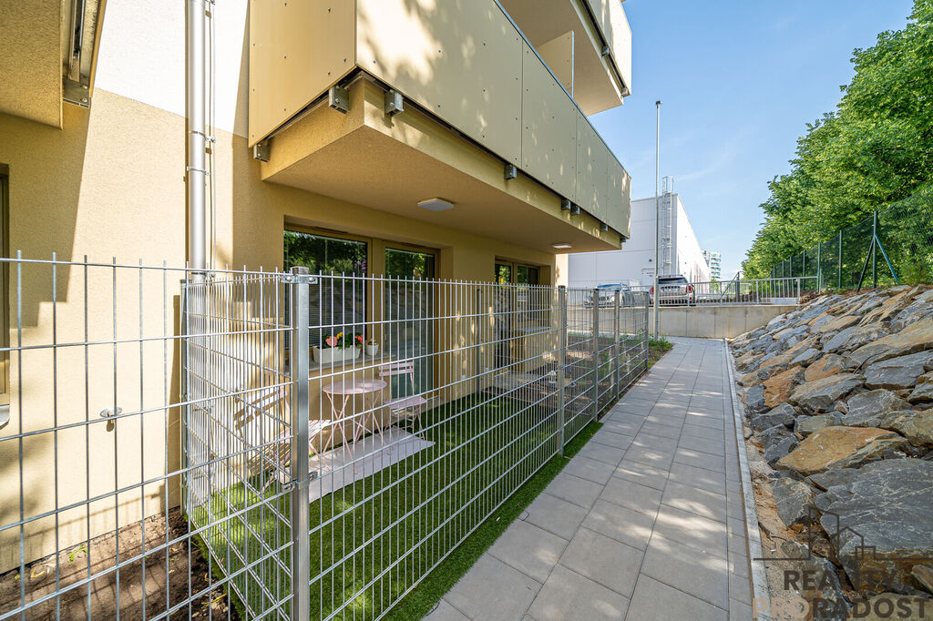 Byt se nachází v přízemí domu, k bytu patří předzahrádka o velikosti 7 m2.