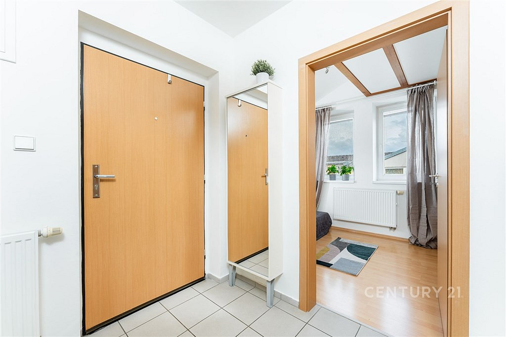 A to není zdaleka vše, podívejme se na další benefity: komora s oknem k větrání a přístupem denního světla, která se nachází na patře hned u bytu, balkon se vstupem z obývacího pokoje, pracovní kout pro práci z domova.