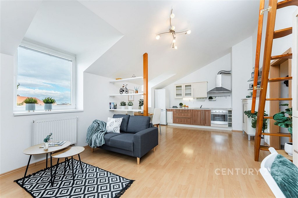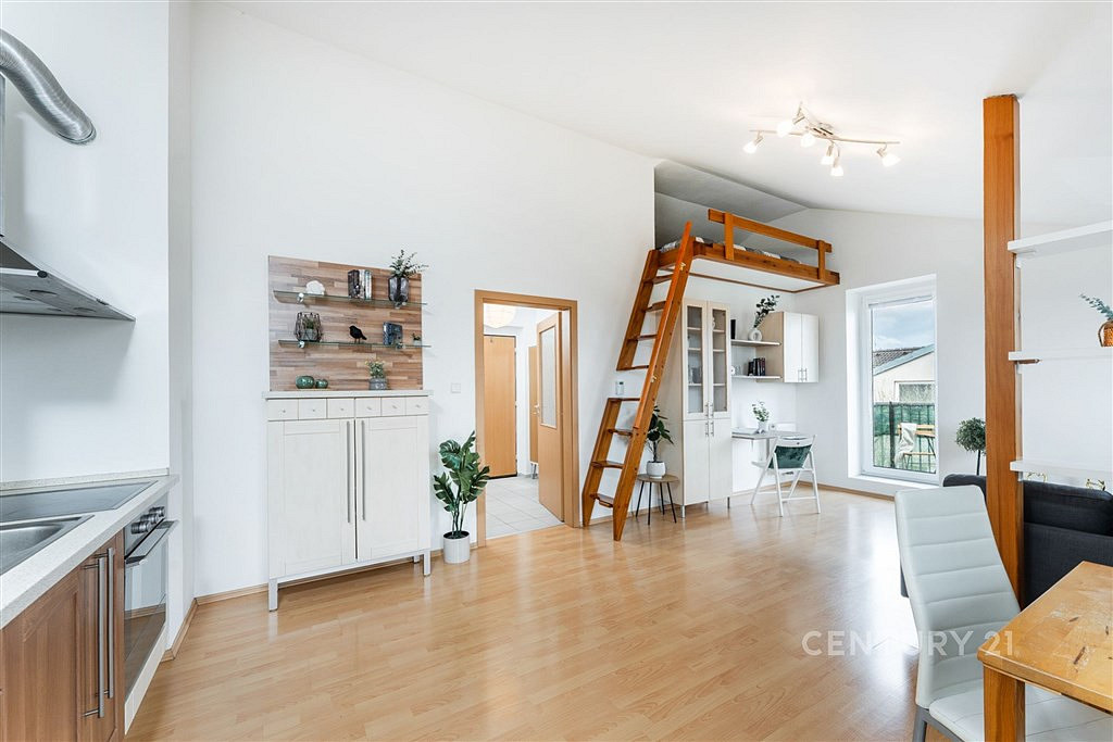 V posledním, a přesto jen druhém patře budete mít nad sebou už jen střechu a nebe, odkud vám nad hlavou rozhodně dupat nebudou. Díky dané dispozici je byt vhodný i pro rodinu s jedním dítětem, protože ložnice se může snadno stát dětským pokojem a galerie ložnicí rodičů.