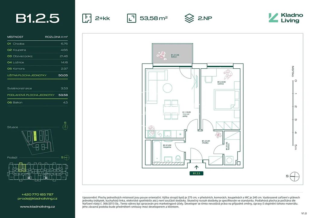 Nabízíme ke koupi moderní byt 2+kk o podlahové ploše 53,6 m² s balkonem 4,5 m² v rezidenčním projektu Kladno Living, který vzniká v jedné z nejatraktivnějších lokalit města Kladno – Kročehlavy. Tento nový developerský projekt představuje jedinečnou příležitost pro ty, kteří hledají nové byty v Kladně nebo investici do nemovitosti s vysokým potenciálem zhodnocení.
