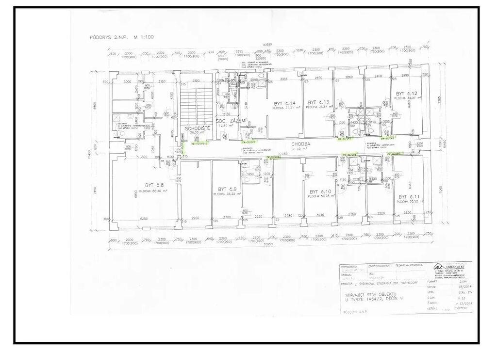 II. NP b.j.č.8,4+kk,112 m2, b.j.č.9,2+kk,35 m2,b.j.č.10,3+kk,53 m2,b.j.č.11, 2+kk,33 m2,b.j.č.12,2+kk,34 m2, b.j.č.13,2+kk,36 m2,b.j.č.14,1+1,37 m2