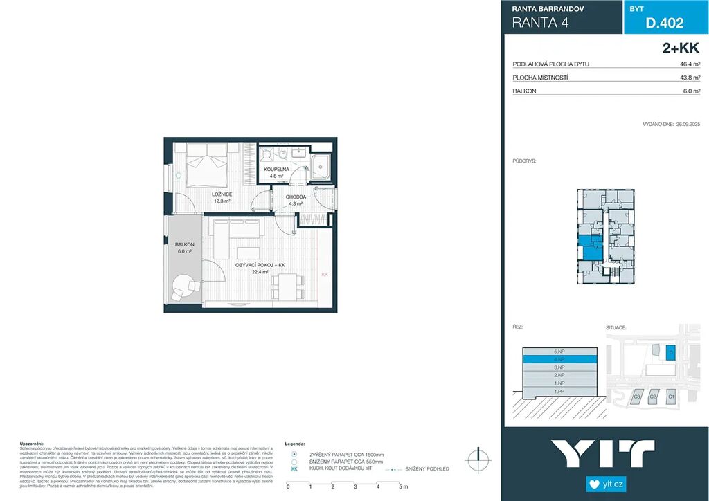 Byt 2+kk o celkové rozloze 46,4 m² je situován v 4.NP projektu RANTA Barrandov IV. Cena zahrnuje bytovou jednotku, sklepní kóji a DPH.