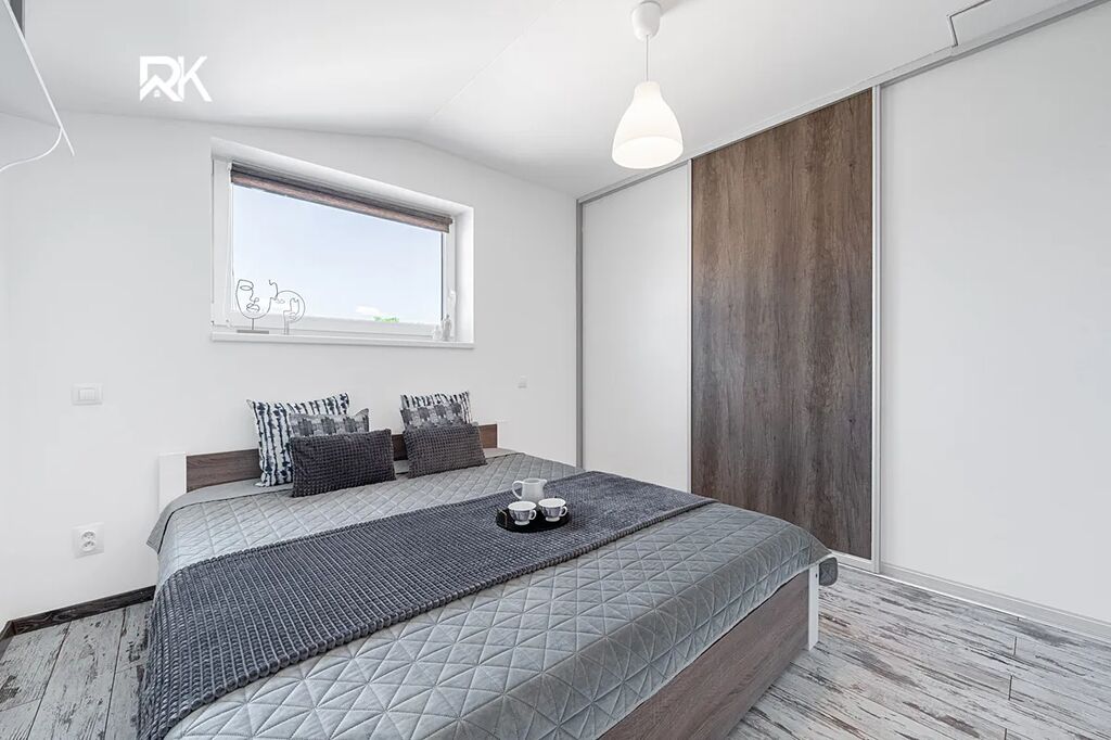 Dům je napojen na všechny inženýrské sítě, vytápění zajišťuje úsporný elektrokotel s podlahovým topením a praktické vestavěné skříně i komory poskytují dostatek úložného prostoru.